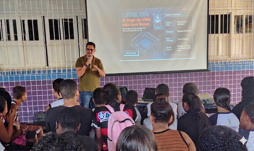 A Escola Municipal Prof. Eleonora da Silva Pinto recebeu, nesta quarta (22), a palestra “Level Up: o jogo da vida