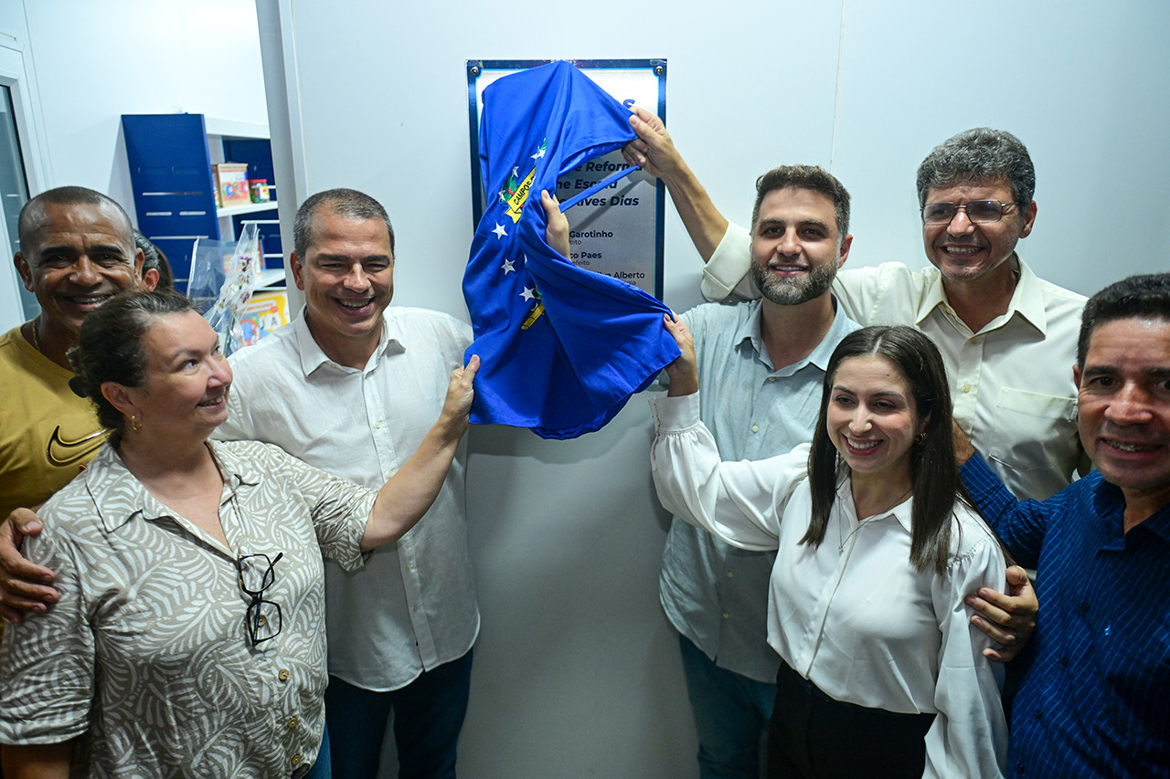 O prefeito Wladimir Garotinho, acompanhado do vice-prefeito Frederico Paes e da secretária de Educação, Ciência e Tecnologia, Tânia Alberto, além de autoridades
