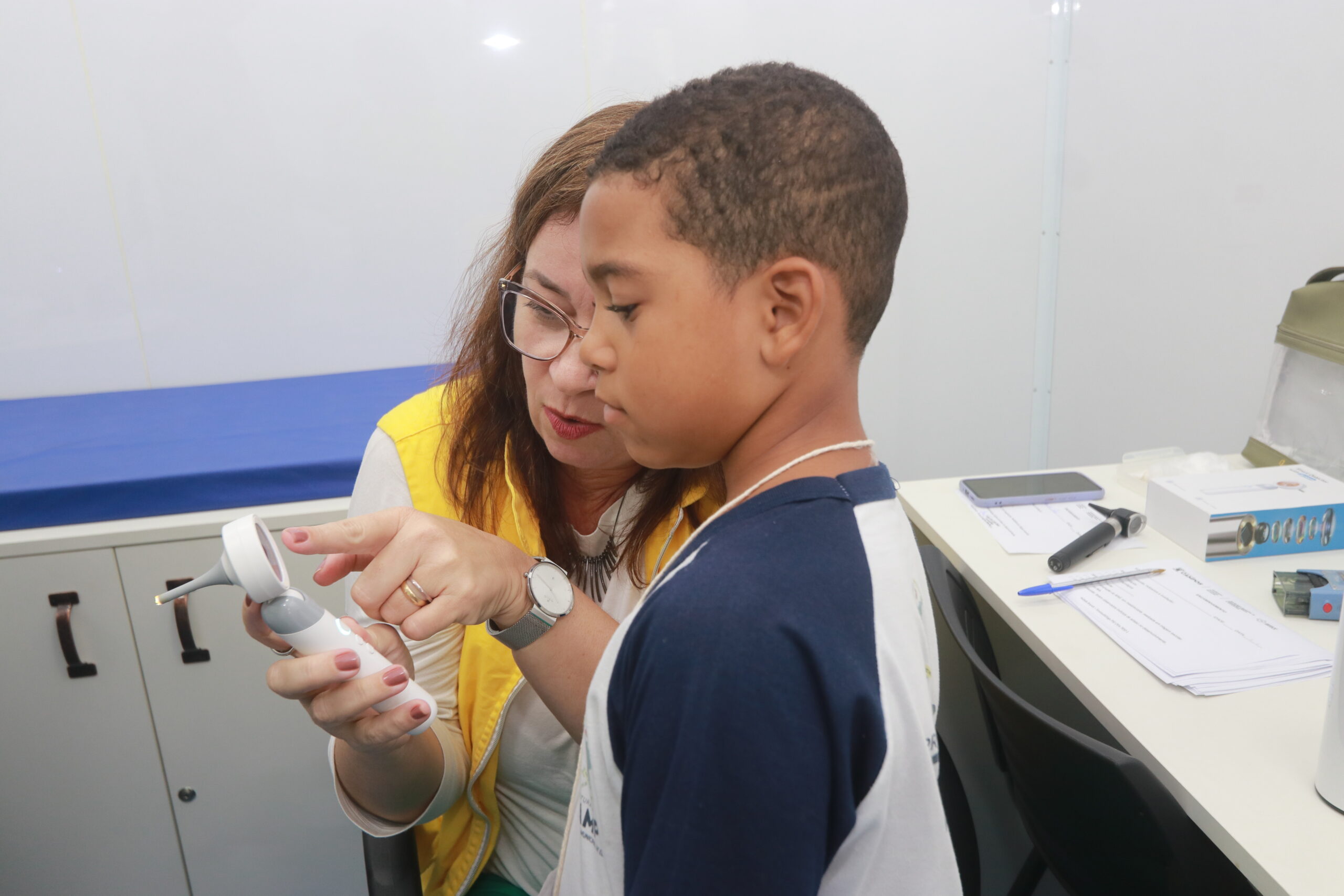 Ações Itinerantes: O “Caminhão de Saúde na Escola” leva serviços como vacinação, atendimento clínico e avaliação fonoaudiológica e nutricional para dentro das escolas.